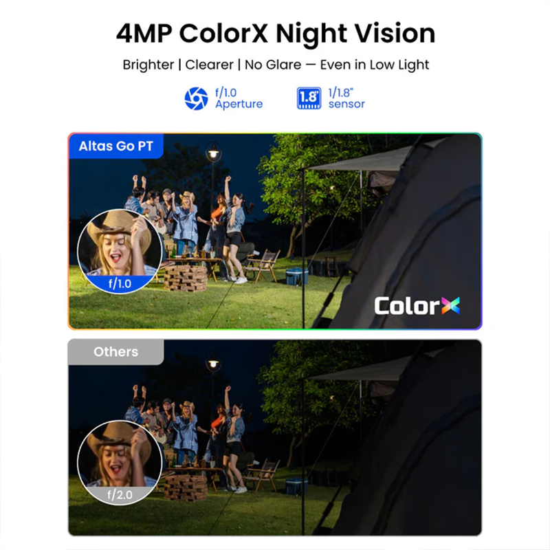 The F1.0 large aperture and 1/1.8'' sensor bring 4 times more light than traditional cameras, providing color night vision that is as clear as daylight in low-light environments without the need for additional spotlights.